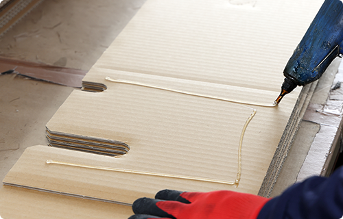 段ボールの加工はすべて熟練スタッフが手作業で行っています。